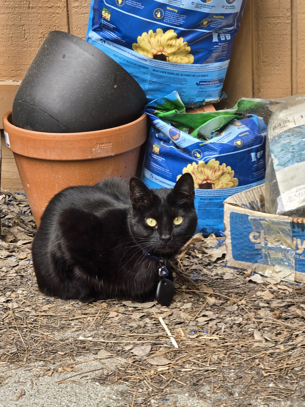 My void gyrl, Pistol, entered my life 10 months after I lost my void boy Hunter in 2022 at only 4 yrs old. I got her at 6 weeks, and she has been my constant companion since. Though her self-preservation skills need some help. She is a true mouser who brings me enough live lizards and mice to last me a lifetime. Just recently discovered her catnip high is celery leaves. She is a true Halloween cat and never brings me bad luck on Friday the 13th. I hope I will be graced to have her well beyond her twilight years.