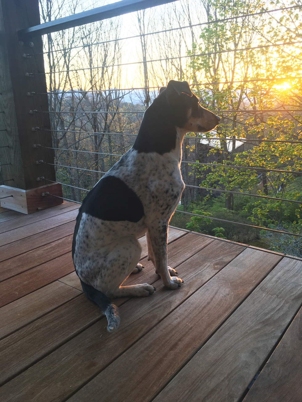 My life is great now; I'm the head of the pack and get the best food and the comfiest bed. I lead my pack on walks and pick the direction we go every day. When my humans are off during the day picking up their other-place scents I get to keep my Grandma company. Dad took this picture of me watching and waiting for Mom to get home.