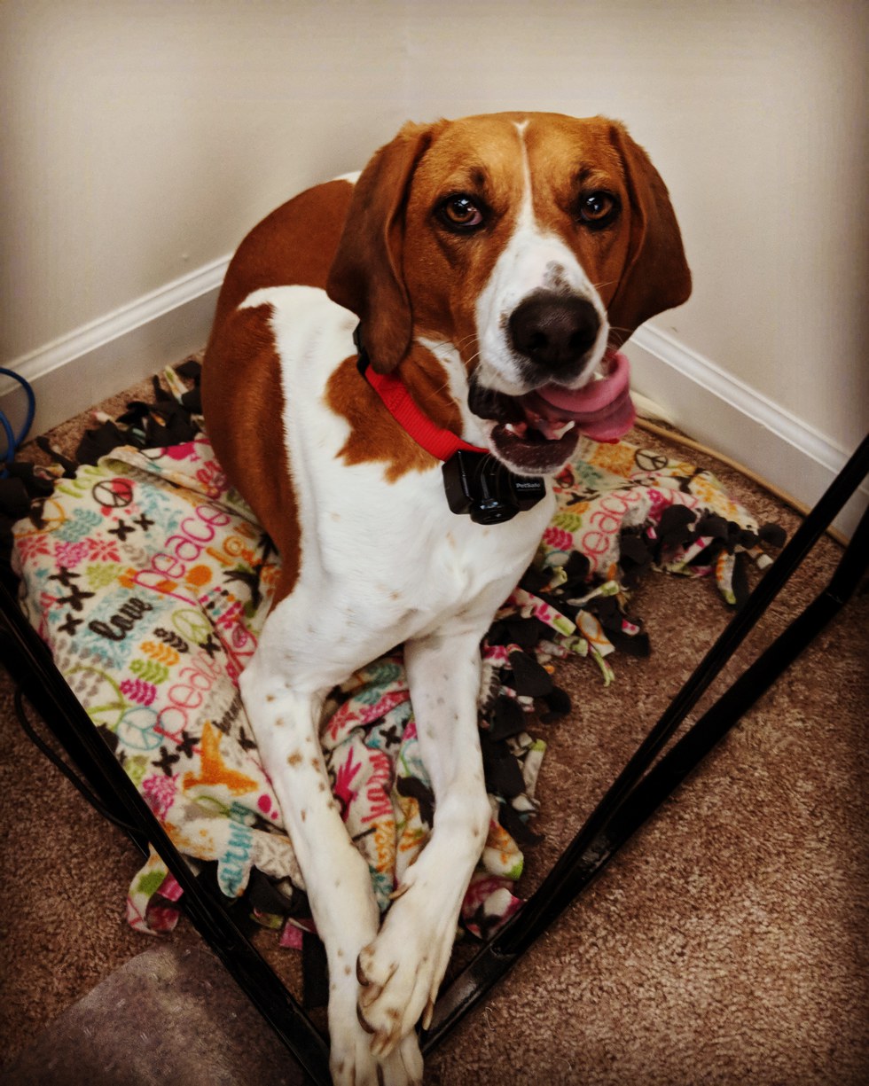 In May 2016 my husband and I lost our dear sweet Delilah to kidney failure, leaving behind her brother Sampson. After months of giving Sampson extra love, we decided it was time to visit the Asheville Humane Society for an "older pet adoption" weekend ... and that's where we met Sookie (a one year old hound).