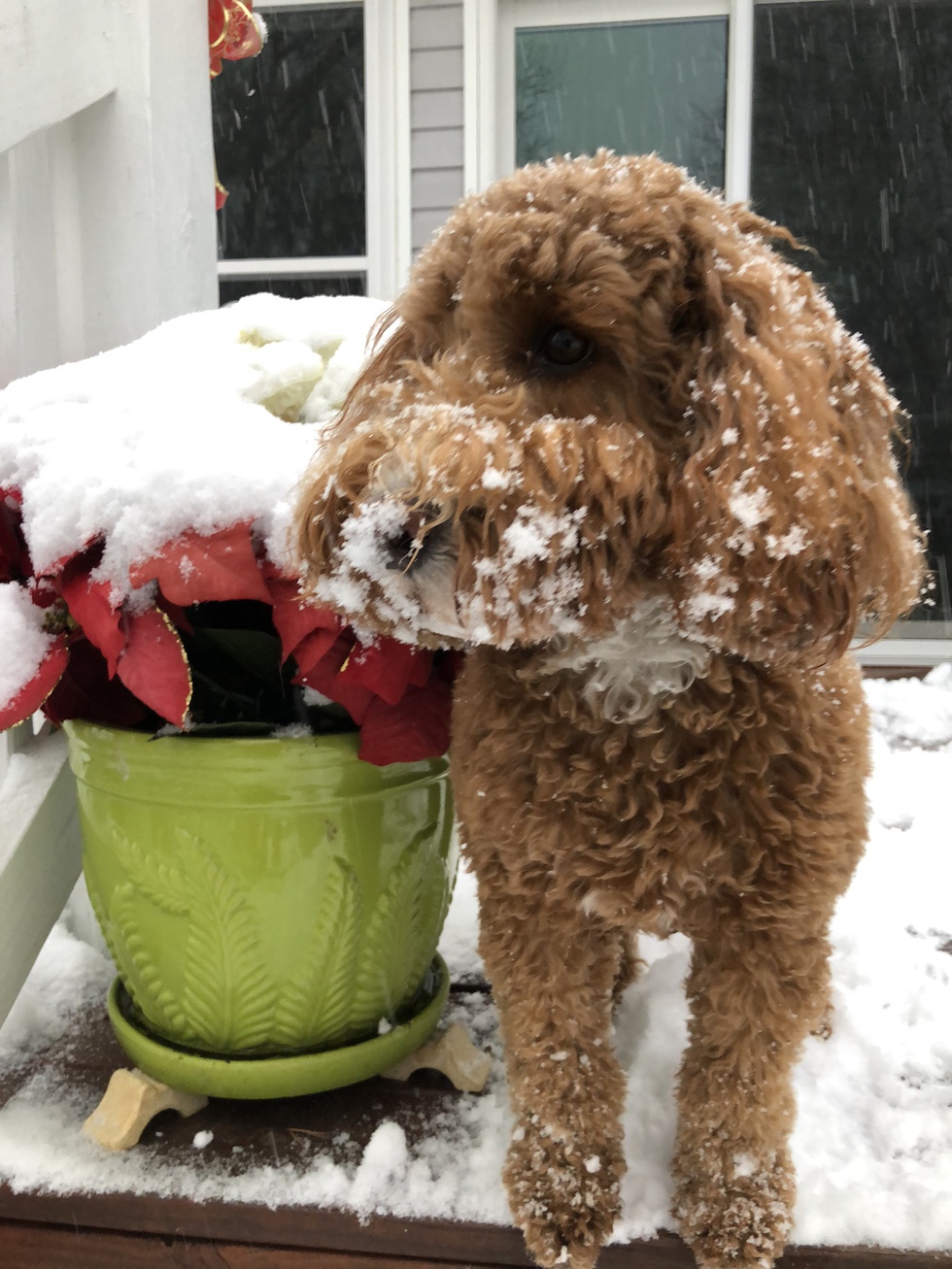 I am a 3 year old Australian Labradoodle who saw snow for the first time when my people moved us to NC from FL. What a blast🐾🐾
