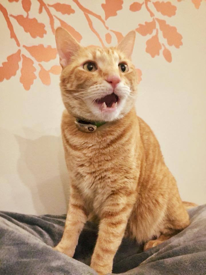Tweekers (AKA Tweek, AKA Tweek R. Tones) is a 5 year old ginger that comes to Asheville via Naples, Florida. Tweek definitely lives in the right place - just like Asheville is the #1 quirkiest town in America, this guy can easily qualify for the #1 quirkiest cat in Asheville. Just like his name implies, Tweekers is a spaz. But, he's also a best friend to all. There isn't a person or animal he's met that he hasn't loved, and if this blue collar kitty had a nickel for every service worker he's supervised he'd be rich. Is your cable man or termite inspector in the market for a new side kick that can follow him around the house and make sure he hasn't missed a spot? Tweek is up for the job! He's a busy boy, though. When Tweek isn't "working" he spends his time keeping tabs on the neighborhood birds and bossing around his "sisters" - another kitty, Olive, and Roxy, a Beagle mix. He's also quite the foodie - recently having discovered the wonder of cat grass - and never passes up an opportunity for a good cat nap. The "hooman" bed is obviously best, but never underestimate how comfy it can be to sleep hanging upside down like a bat - from cabinets, cubbyholes, and any space he can fit and sit.