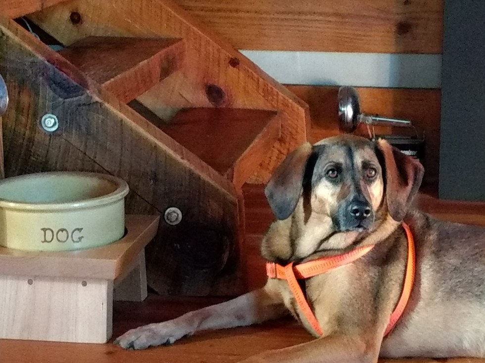 Fiona is smart. It wasn't long before she figured out that cold air comes out of those grated holes in the floor and you can lay on them chillin' the afternoon away. She takes her tennis ball into the kitchen to play, because the cabinets keep it contained and its easier to catch...or she might just be lazy, not sure. Fiona's best trick hands down is her need to be announced every morning. We sleep in the loft of our home. Every morning Fiona comes down the steps half way and stops staring down at us with that "well, I'm waiting" look on her face. One morning my husband decided to announce her like royalty, you know the "Do-do-do-do Announcing Princess Fiona" and wouldn't you know she came trotting down the steps! We thought for sure it was a fluke until it happened the next day and the next and continues to this day!