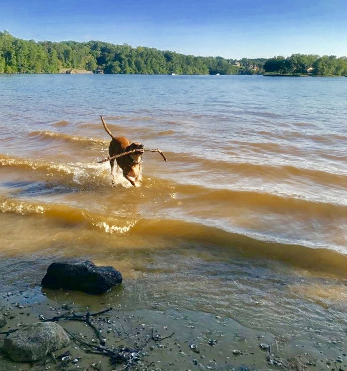 Berkley turned 8 years old this month! He is still just as spritely as ever. I got Berkley from an acquaintance who said she didn't want him anymore. I told her I would take him. That first night at my house he peed in my bed. She had picked him up from a Humane Society in Georgia, and they told her he was a beagle...75 lbs. later I would say he's not a beagle. But he is my best bud and goes hiking and swimming with me.
