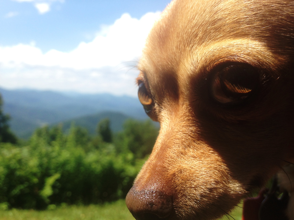 Miz Sayrah is her given name...but she is known as just "Sarah" to my son and I:) Sayrah came to me as a shy foster through the Howlin4Spirit rescue in Rutherford County. She had come from a dog hoarding situation, was not well-socialized, and very timid. After some time spent getting her comfortable with people, and out of the house on the regular (either hiking or downtown), she became one of the most social and friendly chihuahuas I'd ever had the pleasure to know.