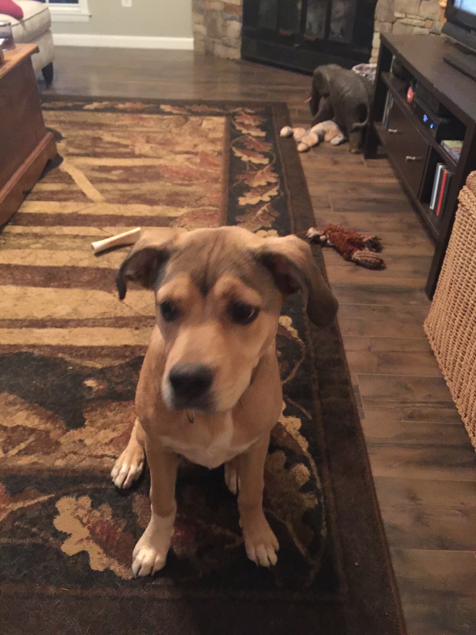 My humans bring me everywhere - we go hiking together and play in the park. They let me come to restaurants and breweries with them, even when they have to sit outside in the cold so I can come with them. I've even run into one of my brothers at the Biltmore! Mommy buys me so many toys and bones, but my favorite toy is my rubber chicken. It squawks when I chew it and wakes my big brother up from his many naps. My favorite thing to do though is to cuddle up close to Bruno for a good sleep.