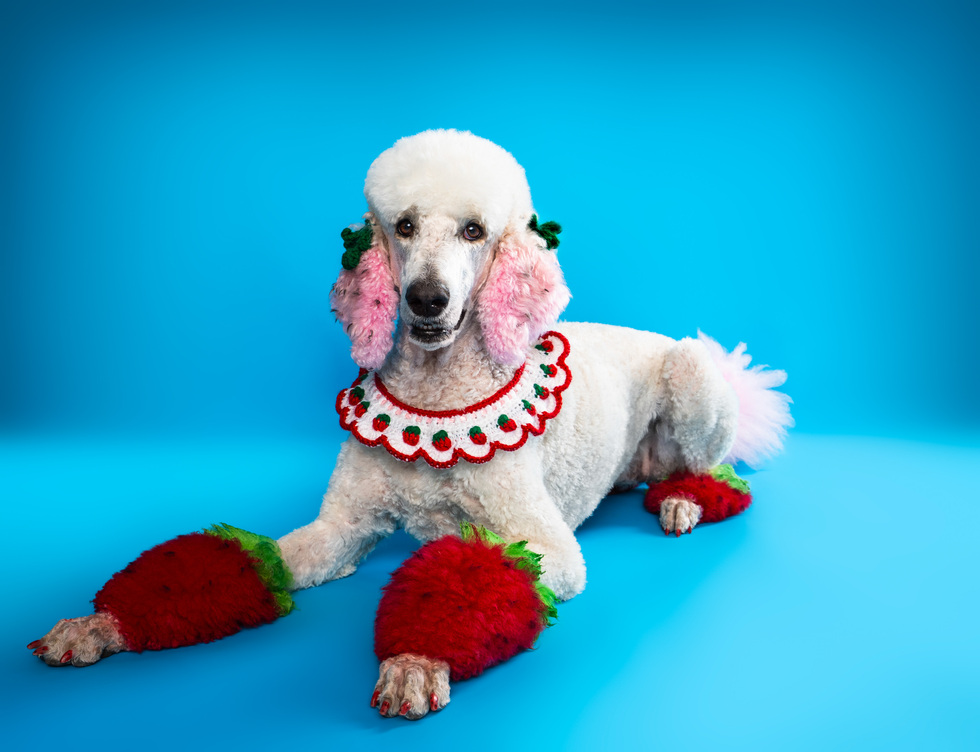Behold Satine, a five-year-old Standard Poodle whose silken curls shimmer in a kaleidoscope of colors. Though domesticated, Satine has retained a wild instinct for spectacle, drawn irresistibly to parades, where she strides alongside her human companions with the grace of a seasoned performer. So much so she has now taken up modeling as well for Cutie PAWtootie Studios.