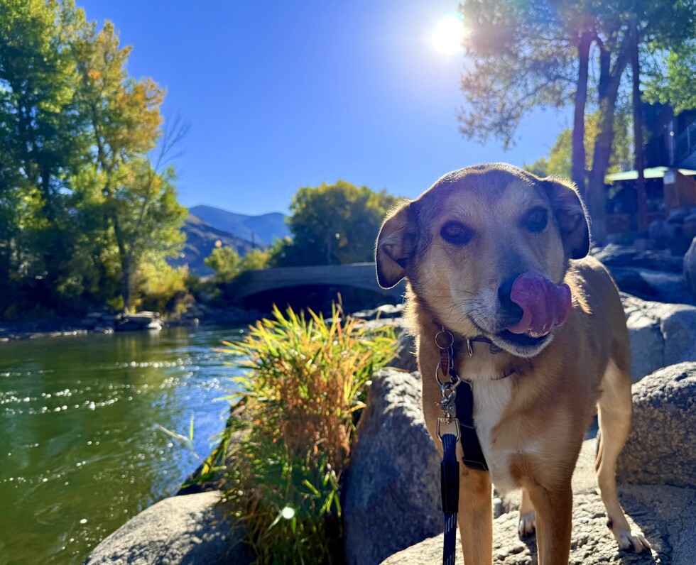 Juniper loves to call the Ark Valley home, happily spending her days sniffing along the trails and finding a sunny spot to snooze in. Don't let her hardcore emo-eyeliner and barky demeanor fool you on a first encounter, Junie's a sensitive lady who is bravely learning to enjoy knee deep river wades and loves a couch snuggle.