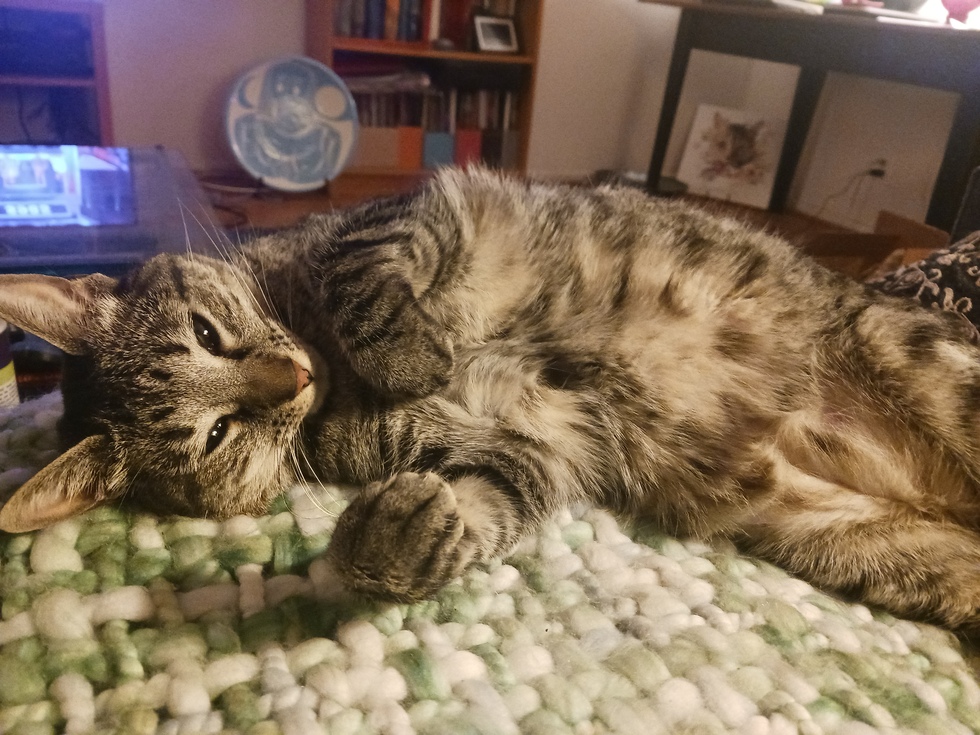 Please provide a brief bio of your pet:Sweetie Pie is a 2 year old kitty who loves people, water, sprinting down the hallway and being the center of attention. He always has to know what's going on and waits for the neighbors at the elevators. He was born in Puerto Rico and was rescued and brought to the US. He has been with me for just over a year and my life is all the better for it