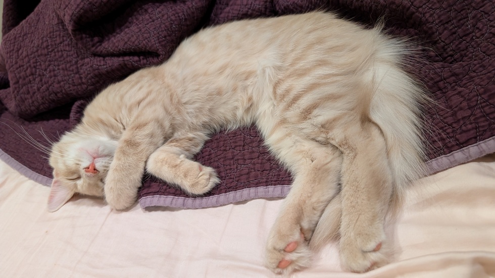 When we brought him home from AWLA as a tiny kitten this July, he was immediately asked to welcome a new little kitten sister—just one month younger—into his new home, only a day later.