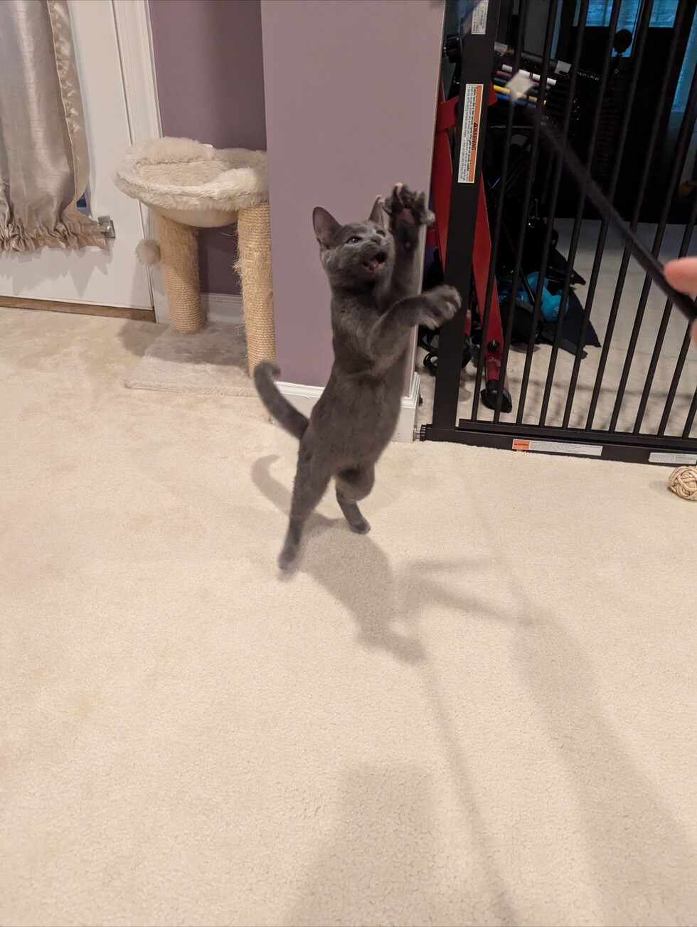 She absolutely loves to play and can go from out like a light to full-on zoomies in seconds. She has incredible hearing—able to detect the sound of a feather toy being pulled out, her big brother batting a stuffed mouse, or a ball bouncing two floors away!
