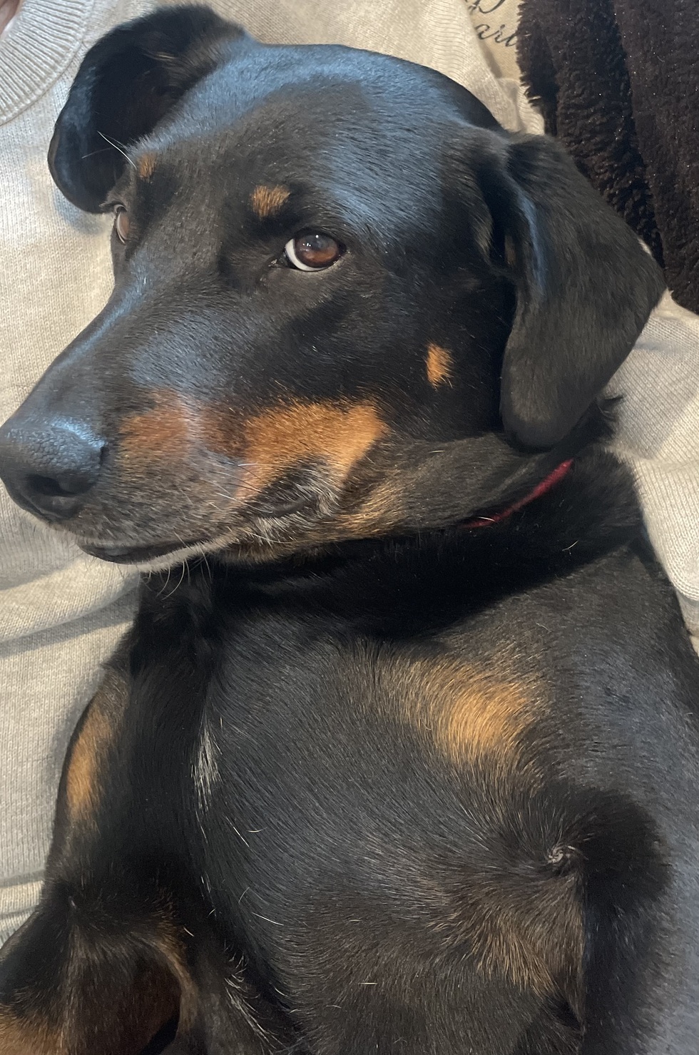 Ripley is a mix of dachshund and Rottweiler- probably the most unusual and greatest dog ever! She is smart and snuggly and very social. What a gift she’s been to our whole family for over 8 years now. We cannot imagine life without her. We’re so grateful to AWLA.