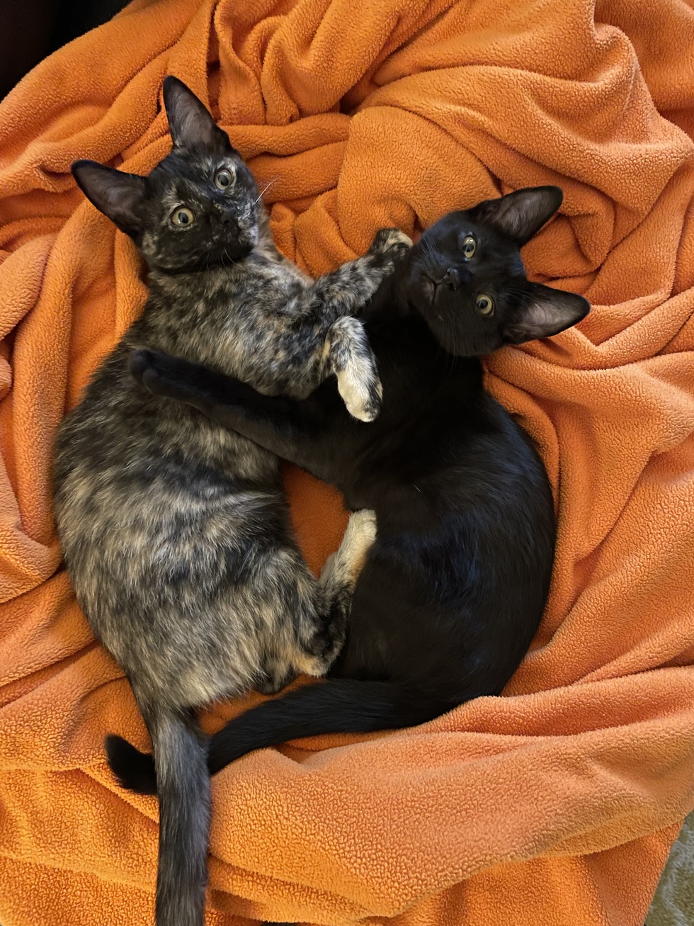 These sisters were adopted from the AWLA and are the best of friends. They are Christmas babies who turn 3 this December. They are playful, mischievous, smart, loving - and perfect! They also live with a rescue pug named Sullivan who is their big brother and always looks out for them.