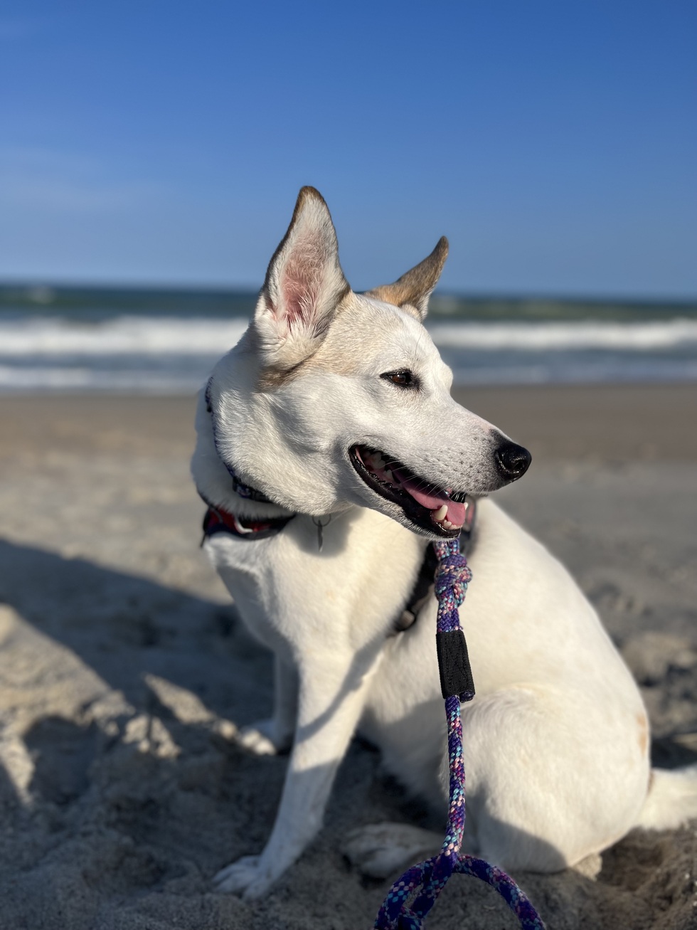 Toast was rescued from the Rio Grande Valley in 2020, but has been rescuing us ever since. She is a friend to all (unless you’re wearing a suspicious hat). She’s particularly fond of her Arlington neighbors who regularly have treats for her. She’s a good politician as well, happy to kiss all the babies (we think she figured out they often have yummy treat residue in their cheeks!)