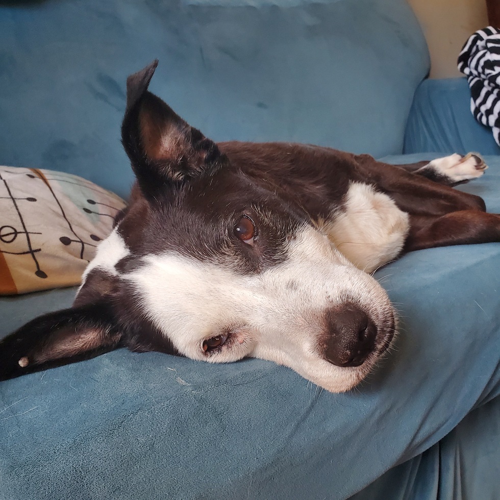 A 13-year-old pittie mutt. Named for the animated panda, not the poet (see spelling). Aging gracefully. Known for enthusiastic high-fives and escaping his enclosure to either run directly into a swamp (spent most of his first 4 years in Florida), play with a giant neighborhood pig (ended in stitches), or leap into a burned-out car husk anticipating a ride (reasons unclear). In possession of minor regenerative powers (too many spleens).