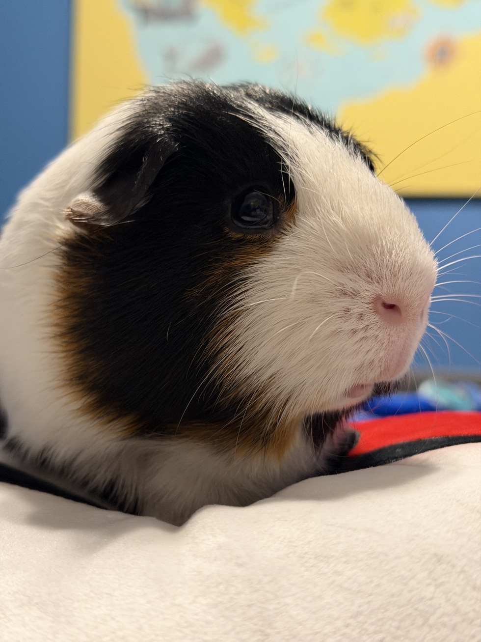 He squeaks like he hasn’t been fed in years the second he hears the fridge open because obviously the world revolves around his daily greens. Total drama king for attention… but the moment you pick him up, he turns into the sweetest, snuggliest little cuddle potato. I'm a part time salad inspector and full time professional attention seeker and cuddle bug!