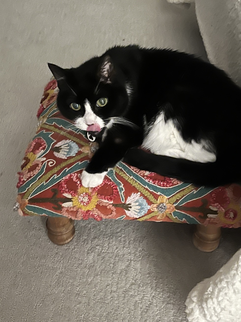 Mitzi is the sweetest kitty ever! She’s 18 years old and she doesn’t get around as quickly these days, but she’s still kicking butt and taking names!! She loves taking naps on her new stool from Home Sense and cuddling ❤️