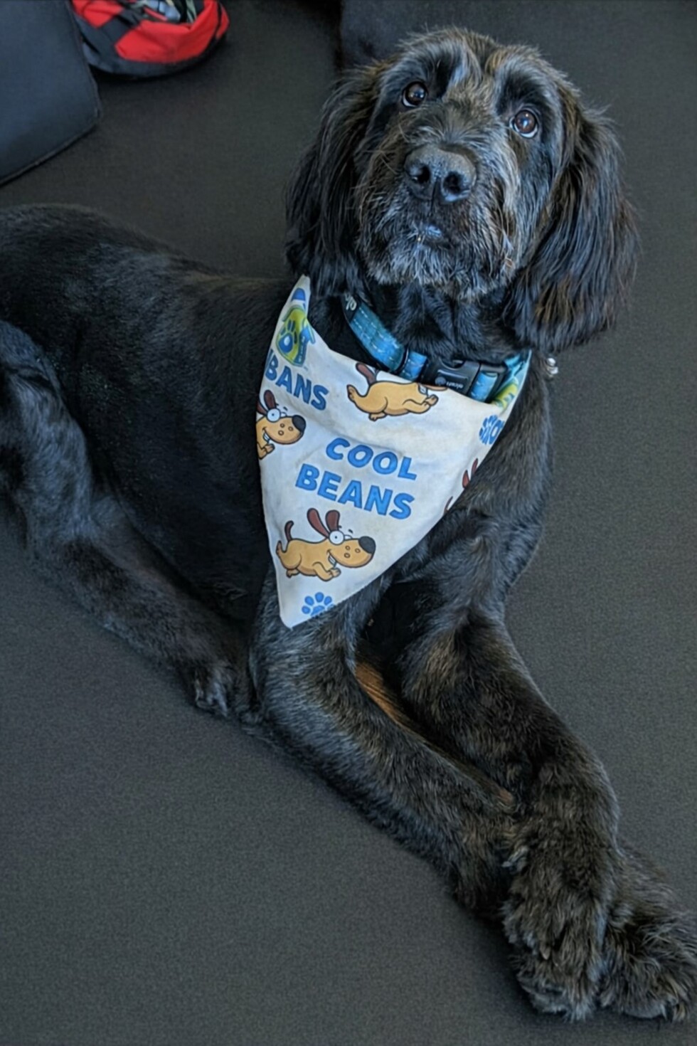 Any dog can wear a bandana. I wear it like a sash of office. “Cool Beans” isn’t a phrase — it’s a declaration of status.