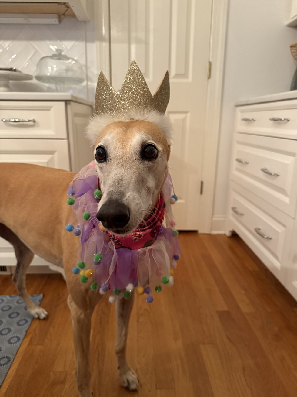 Special tricks or characteristicsMy name is Lido! I am a retired greyhound from a race track outside of Orlando, FL. I ran in 72 races over 2.5 years. I was quite the competitor and finished in the top three in over half of my races. Greyhounds are known for reaching speeds up to 45 miles per hour. I still love to run and jog with my owner about 3 miles per day. I also love to run zoomies around the perimeter of my backyard. 🐕🐾