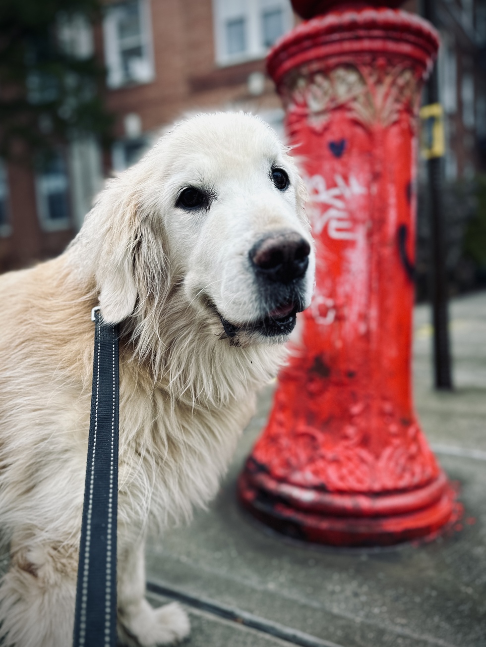 This is Harlow. He's a big goofy Golden Retriever. Harlow was rescued from the Upper East Side where he was living like Richie Rich but wasn't getting the attention he needed. He's now slumming it in Brooklyn. He loves balls, balls, balls and more balls. He's a living breathing garbage disposal. He'll eat anything off the street, the more disgusting the better. Despite that habit, he's very much loved!