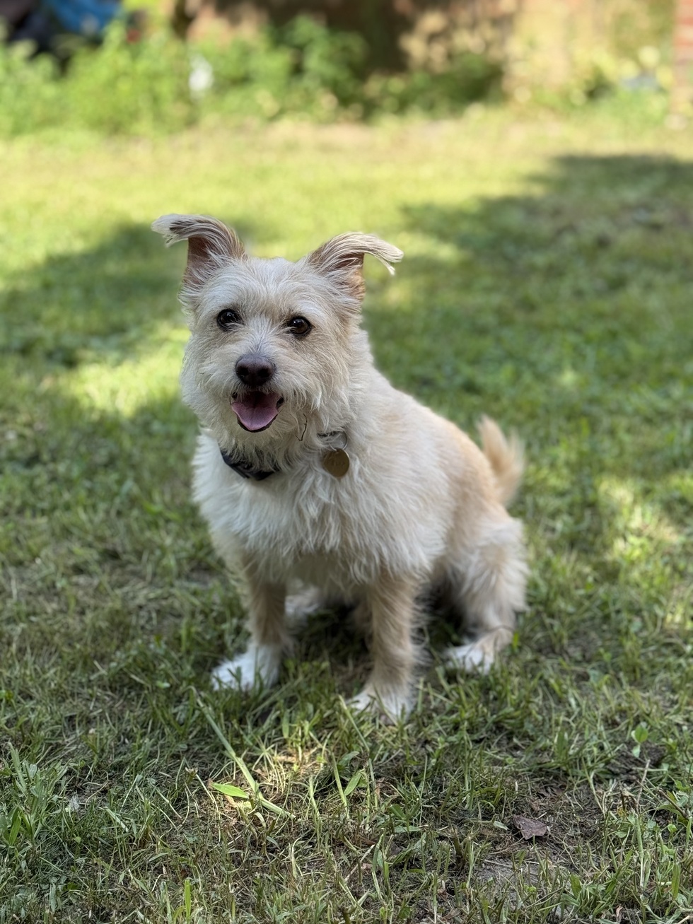 Felix is a schnauzer-chi-pom mix who came up from Texas on an adoption transport in 2023. He loves long walks, chasing after the big dogs at the park, all kinds of fruit and veg (snap peas and corn are his favorites), and belly rubs. He sniffs his pee-mails like a sommelier sniffs a fine wine. He’s also well known in the neighborhood for barking at motorcycles and singing along with fire trucks when they play their sirens. He plays hard, loves hard, and naps hard.