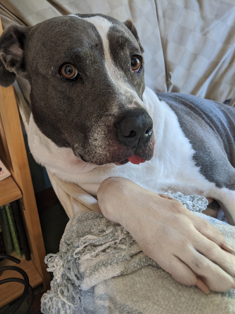 Out of hundreds of pit bulls up for adoption, there was only one Star! With the help of two rescues, Star journeyed from an Arkansas shelter to her forever home in Connecticut. She has since appointed herself chief security officer and resident nanny to her toddler brother. When she's not catching up on beauty sleep, Star's out walking the neighborhood, or cruising to Dunkin' or Starbucks. She loves tasty treats, tons of cuddles, and cozy places to lounge.