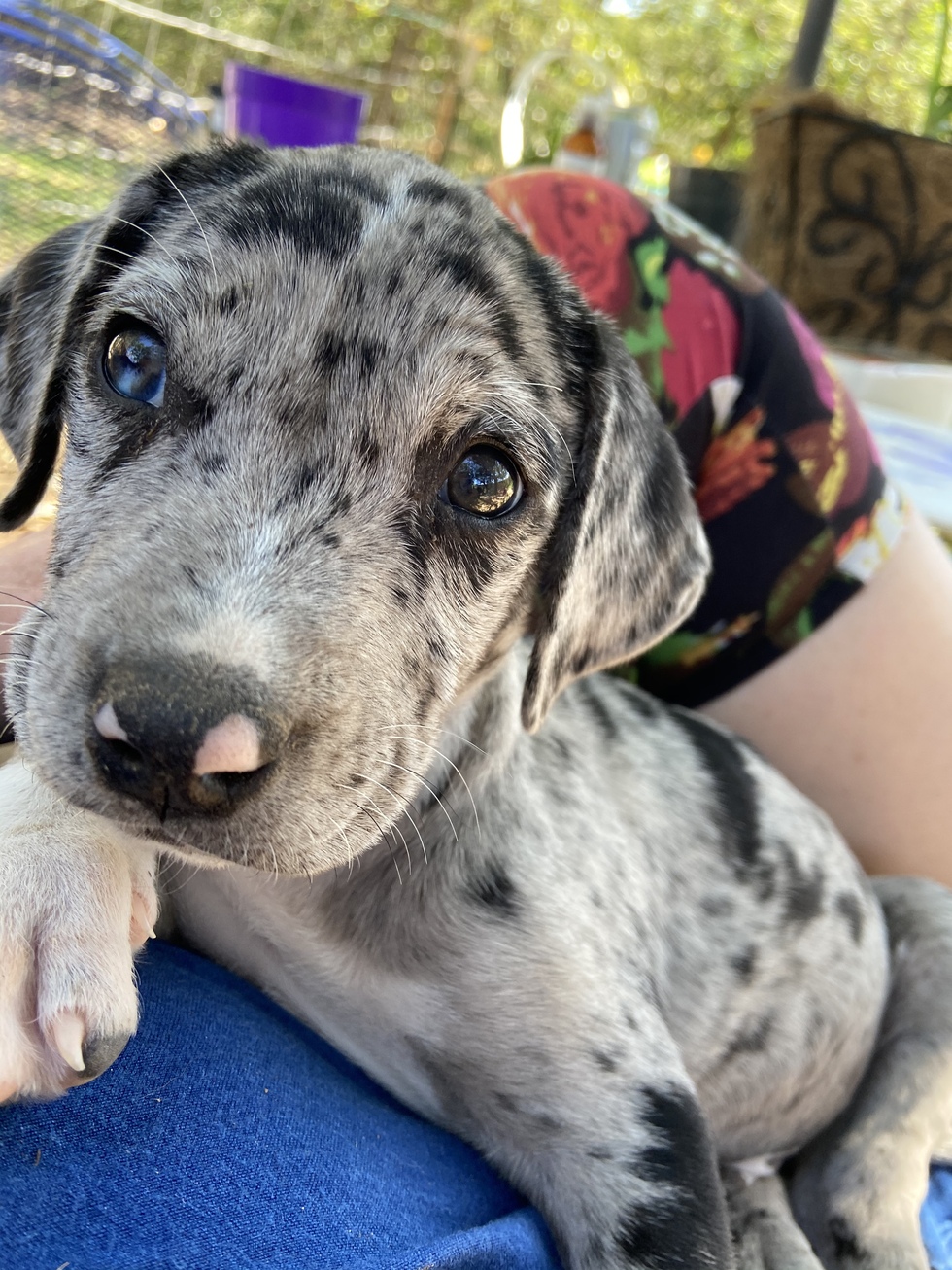 Leopard aka Leo was the one puppy we kept when my dog Black Velvet had puppies. I found good homes for all of his 5 sisters. He was the only boy. He loves to play and sit in my lap. Sweet boy Leopard!