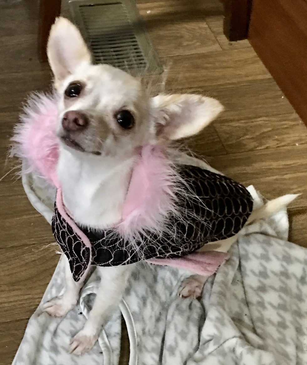 Sweet and loving but willing to take on any beast no matter the size to protect her home. Chloe keeps her mom in shape with long walks. Five miles is not a problem. She will make you laugh when your sad and give a snuggle whenever you need one. Rescued as an adult from bad situation she quickly learned how to walk on lease and go potty outside