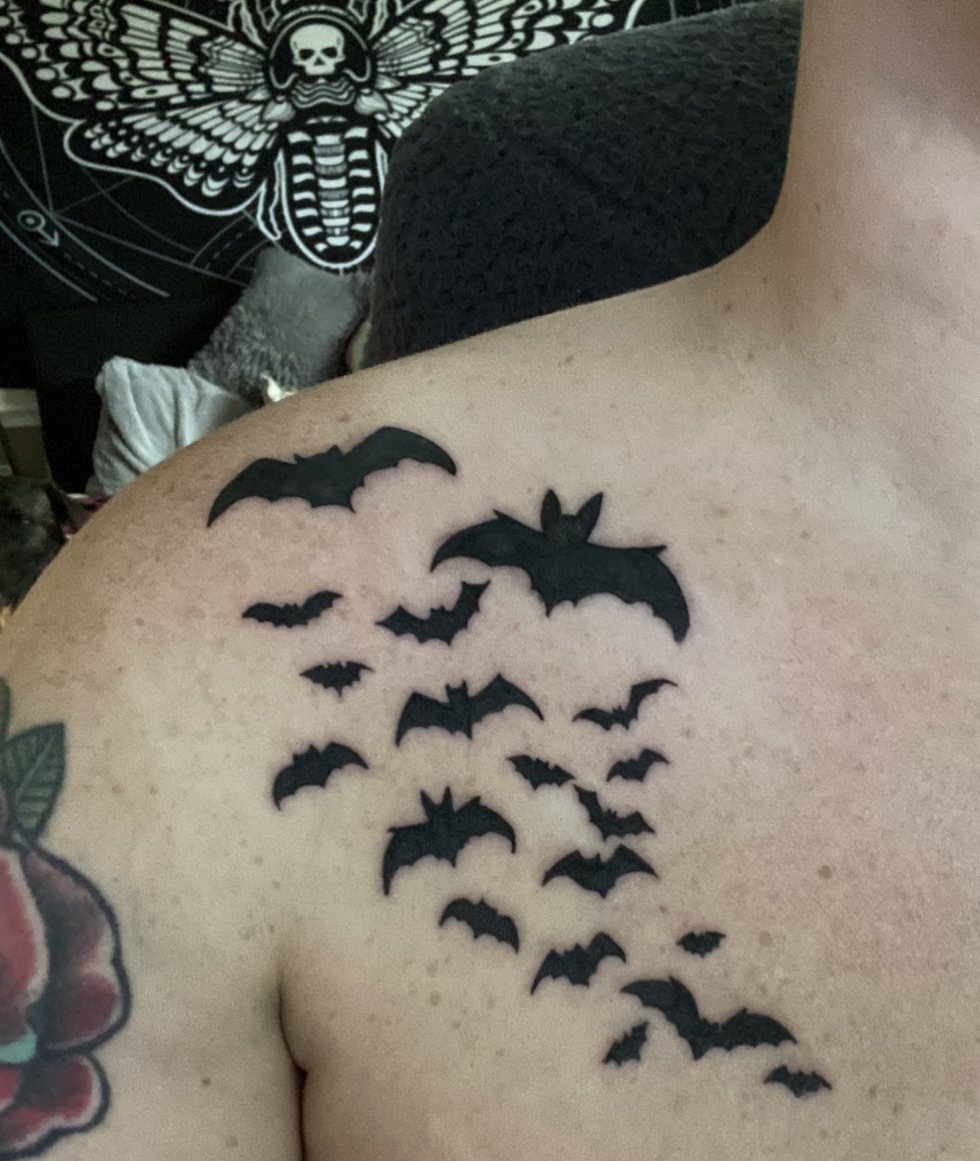Tattoo inspired by Eddie Munson 🤘🏻 I love bats and help with bat rescue transport when able 🦇🖤