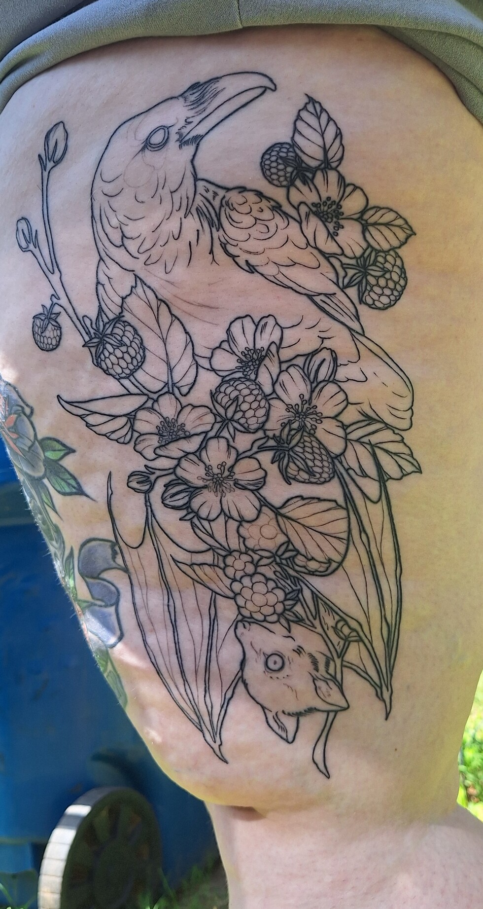 I love bats and ravens. Really, all dark creatures of the night. All animals matter to me. These two are resting on a blackberry vine, which is one of my favorite fruits.