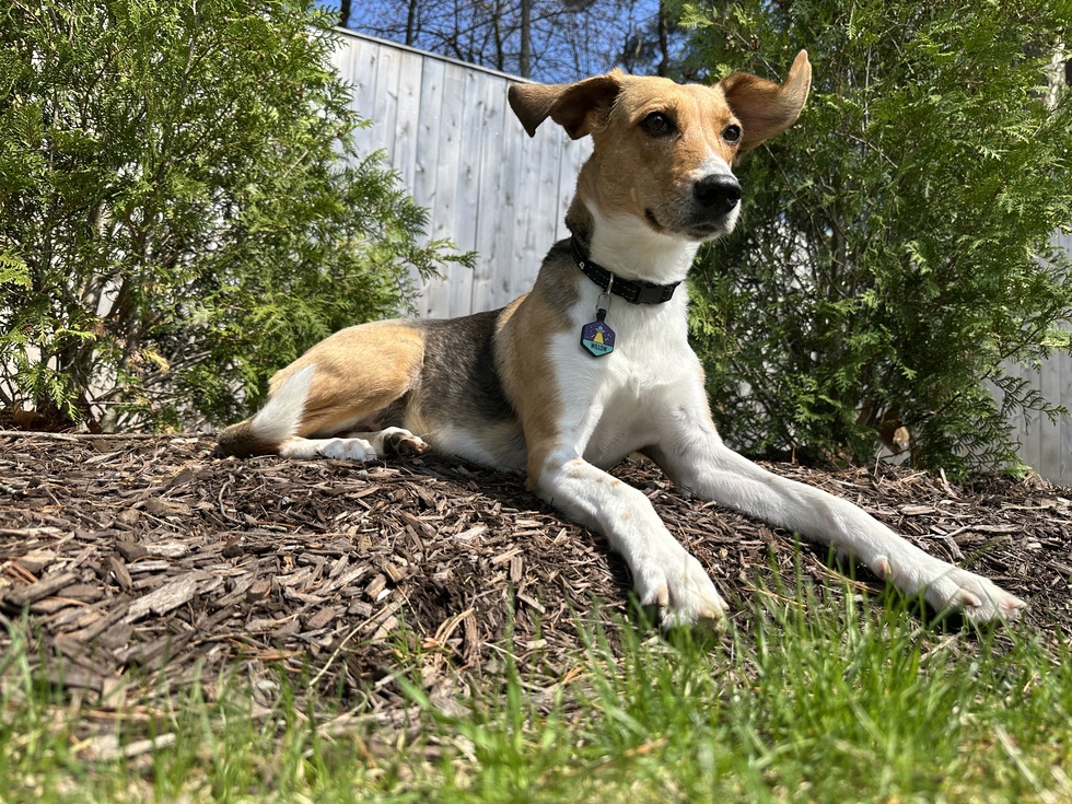 Willow is an American Foxhound with the sweetest, most loving personality. She’s nice to her cat sister, loves giving kisses and most of all playing with her squeaky yellow ball.
