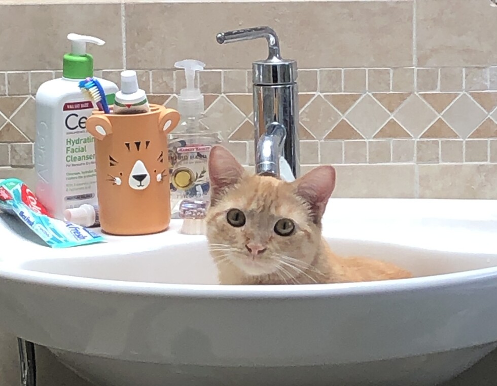 Guava was adopted from Baypath late winter this year because our Duke Ellington was grieving his bonded litter mate, Duchess Adelaide & wasn't eating. Within two days these two were hitting it off. Guava became a lady when she came home because she is with a Duke now. Best cat ever. <3