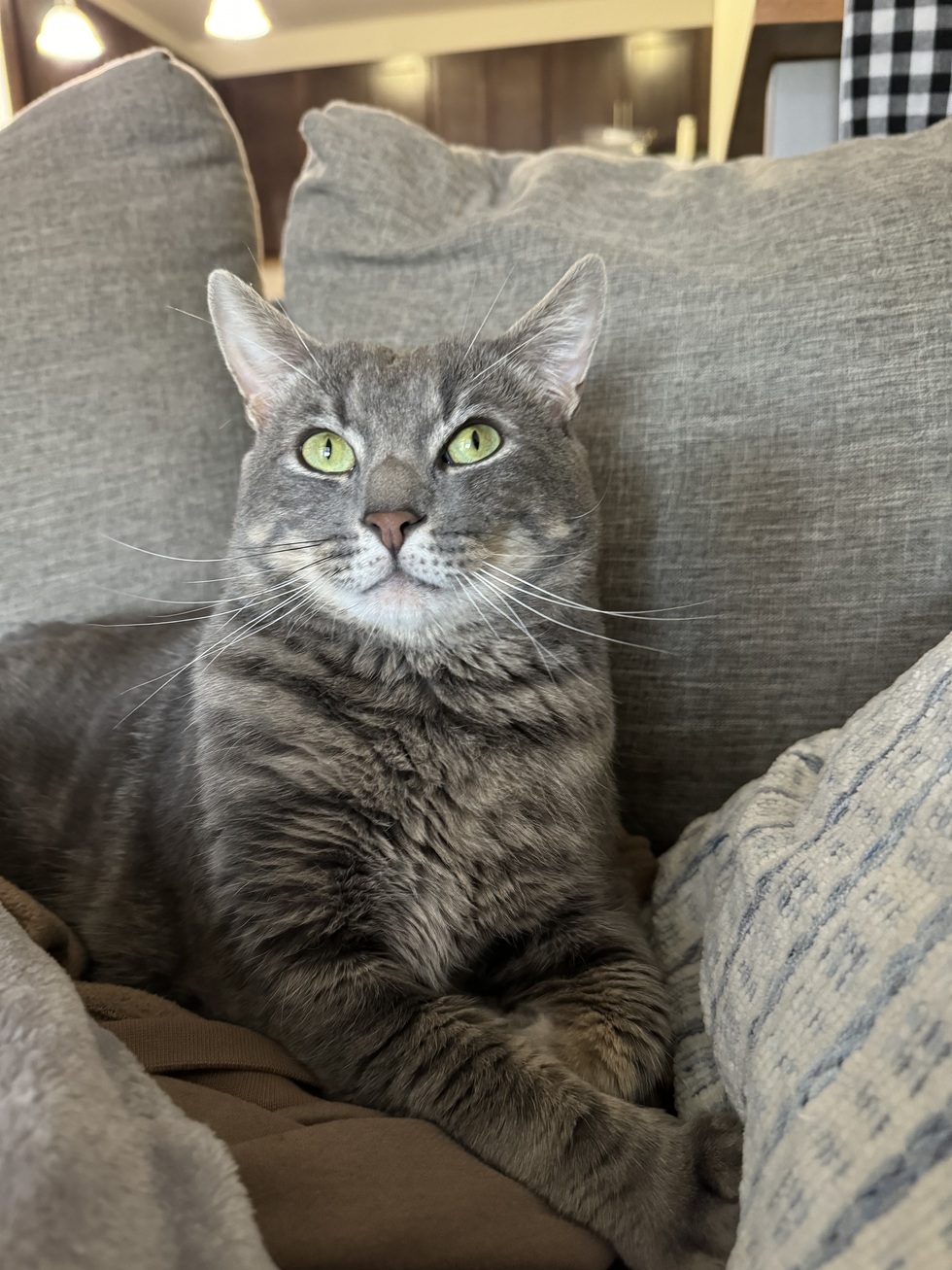 Panini was one of the kitties that had been at the shelter the longest. After lots of medical issues, we brought panini home to foster. Immediately we knew he was part of our family. Panini is the snuggliest, sweetest boy and we are so lucky to have him.