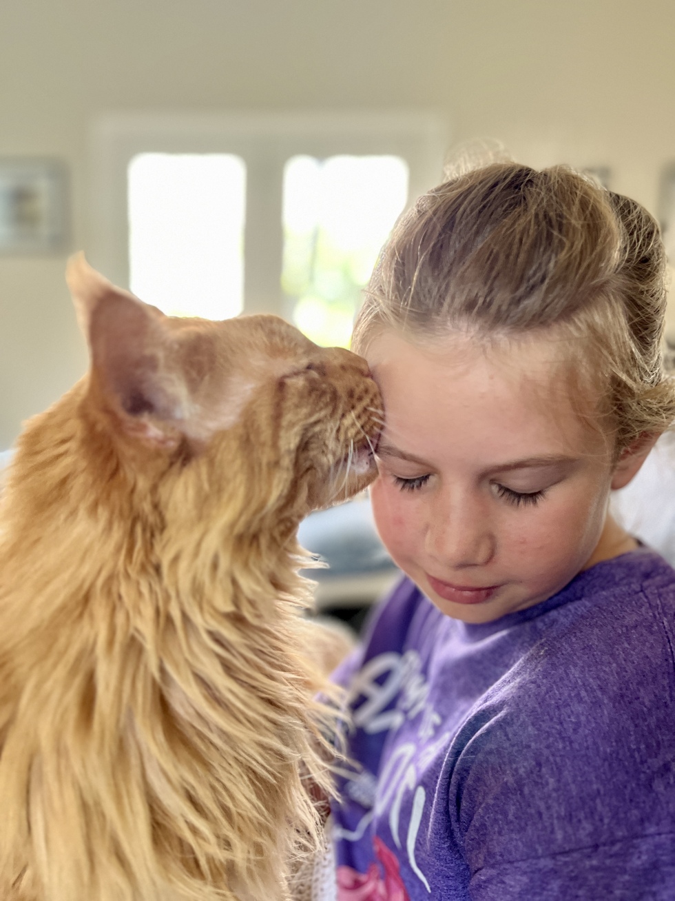 Oslo ( formerly chevy ) came from a hoarding situation where several Maine coon cats were taken in by Baypath for rehoming. After dealing with several medical issues, having surgery at Tufts, he is now a very happy and healthy part of our family! He’s the bestest boy always ready for a snuggle, kiss or a game with his mouse! We are lucky to have him.