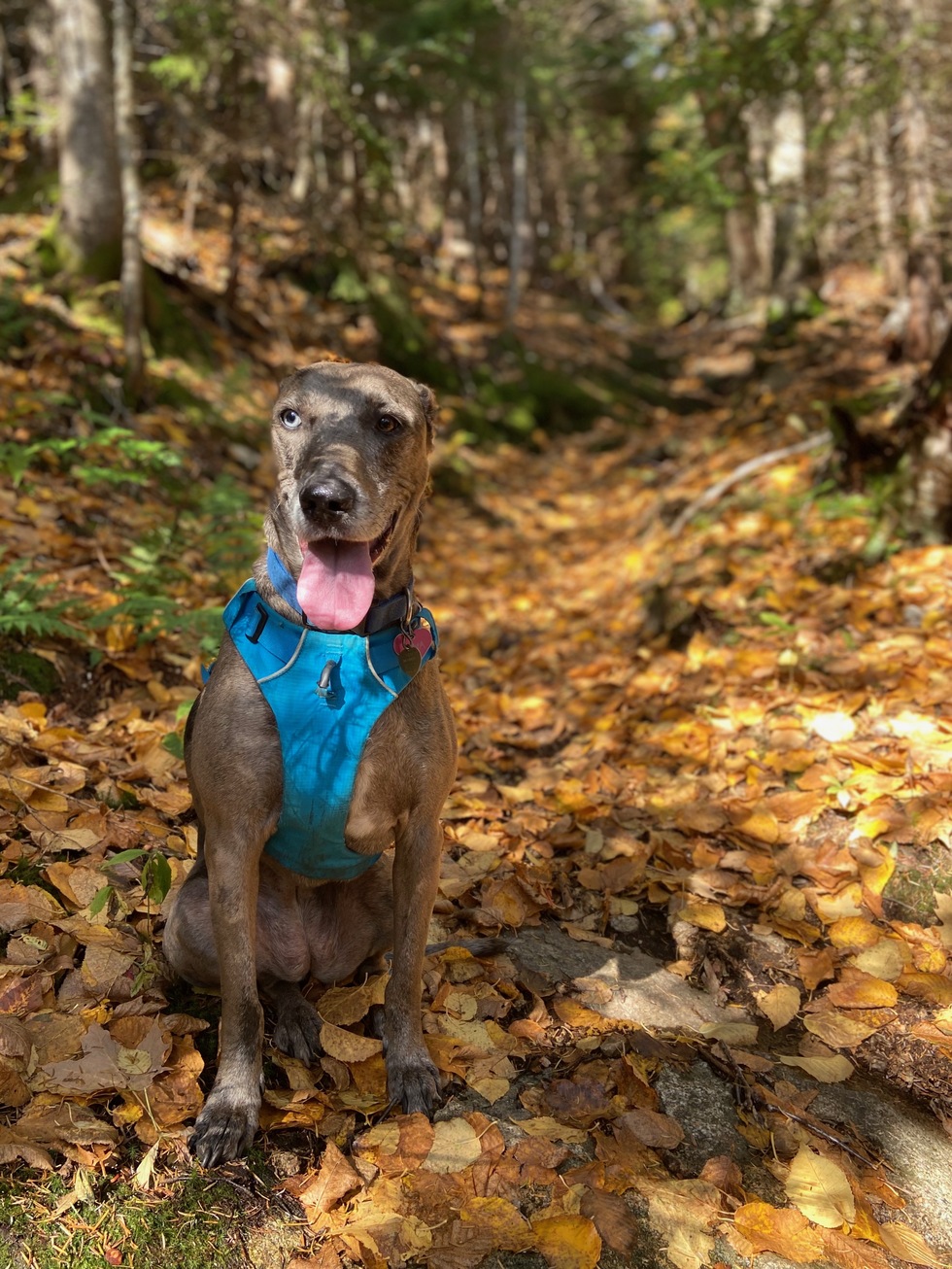 Sabrina started out with Greyhound Friends in Hopkinton, then went to Baypath. We adopted her on 8/8/2014 at the age of 1 and changed her name to Luna. In her younger years she was an avid hiker conquering many of the 4000 footers in NH. Now she spends her time laying in the sun, romping in the garden and eating the occasional raspberry right off the vine!