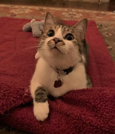 After 200+ foster kitties we met our match - the one we could not live without. Wilson keeps us on our toes, he has to be the center of attention and knows how to get it! In this picture he was sitting on his Dog sister's blanket and would not budge.