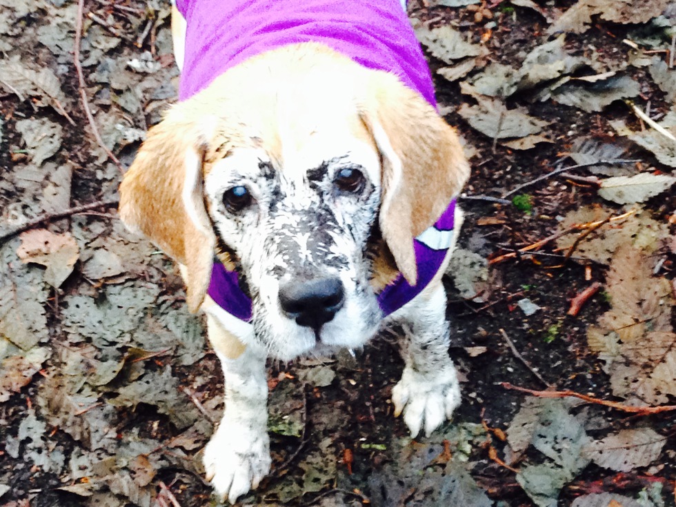 This was a spring day when she went for a drink of water in Deep Bay Creek and was not expecting the banks to be so soft.