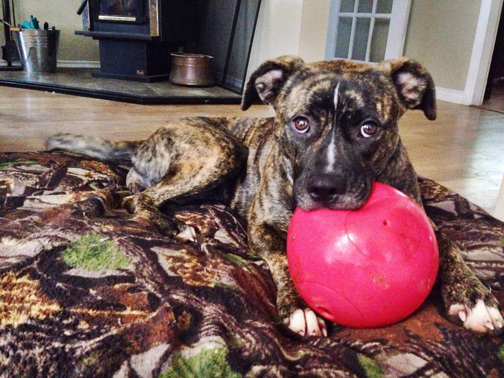 BioNola is a Boxer Pitt Bull. We adopted her from the Nanaimo SPCA in September 2016. When we met Nola, it was the day she got her cone off after having her back leg amputated. Only Nola knows for sure what tragedy she experienced that led to her losing her leg. When her foster family brought her in, she approached us with such love and affection, and immediately snuggled in between our legs. She didn't move except to reach up for treats. We all knew immediately she was perfect for us! But it wasn't up to us, it was up to Nola. And thank goodness she chose us as her forever home. Nola quickly became an integral member of our family. She even got our cats FeeBee and Walter to warm up to her. Upon first glance you would never know she only has 3 legs. Nola runs circles around her dog friends And greets every person and animal with a big smile. She loves to bury bones and helps carry in firewood., sometimes she decides to run around the yard with the firewood 😉 . Nola has taught herself to stand up on her one back leg. Although brief, She balances on her one leg and shakes our hand when we come in the door. Nola has enriched our lives in ways we never imagined. She keeps us active and on our toes and we feel blessed to have her in our lives.