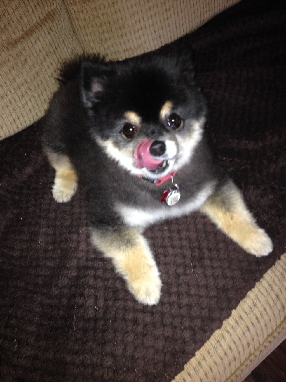 BioMy Cinder Pomeranian was 3 1/2 pounds when I got her at 4 months of age. She was smaller than her brother, but I wanted a female pup anyway. She was so sweet and was happy even riding in the car on the way home. As she was born and raised in Vernon till I got her. She is symmetrical in colour on both sides. She is a pure breed but we never let her have pups as just wanted her. She is now 11 years young and loves the outdoors. She is pretty spoiled but we love her. She has her own little quirks and loves attention and she sure does get it. She has a little heart condition but she has medicine to take daily. So she is Special to us.
