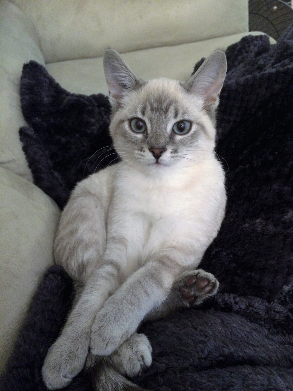 BioDiesel is a Lynx-point Siamese kitten and his 1st birthday is coming up : ) He loves snuggles, watching television, and going on walks in his harness. Diesel loves going for car rides and playing with other animals, including his toy mouse. His appetite is huge, he will eat anything. I'd say by the look of him, his eyes are bigger than his stomach. Diesel is a very smart kitten, he has learned to sit and stay. We are extremely happy that we adopted him from the Prince George BC SPCA : )