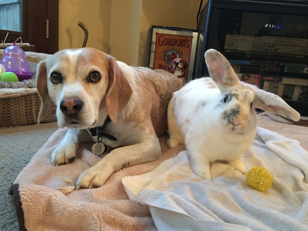 BioKing Kong was adopted by us at our local spca 9 years ago, Rey his rabbit friend was abandoned at our vets office and they contacted me to give her a home. As you can see she is quite enjoying her life now, we love her dearly.