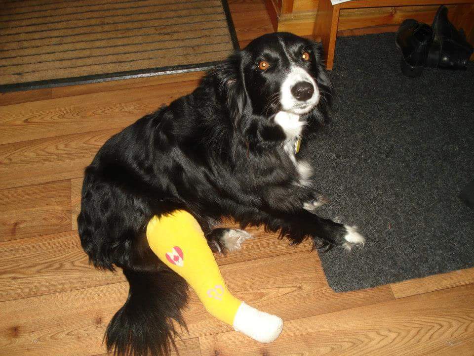 Macy recently broke through the crust or top layer of snow, her leg went down while her body twisted and broke her leg. Poor Baby has had a long road but she is doing great!