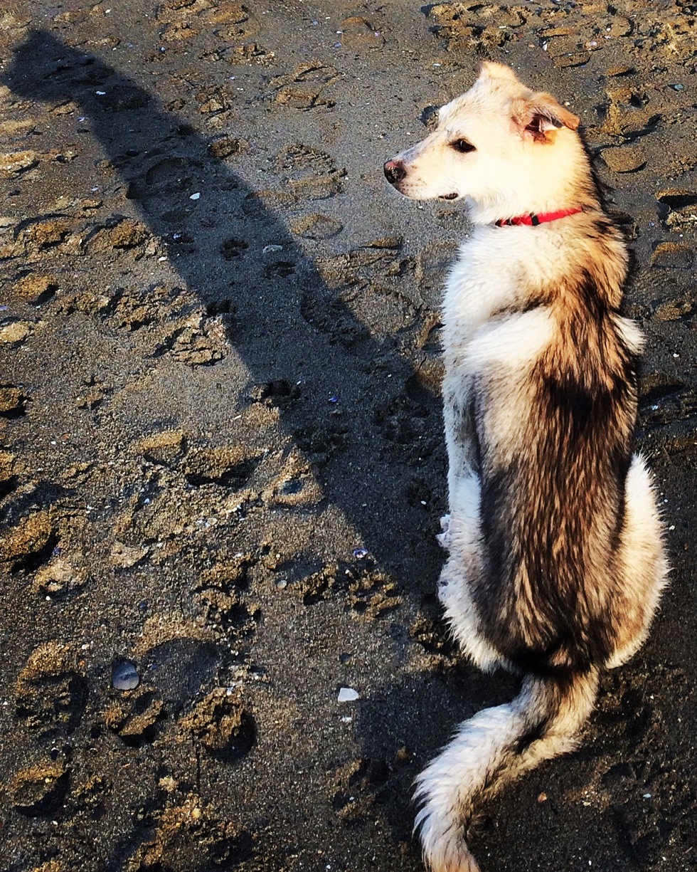 Higgins is a husky/lab mix and was rescued from a shelter in Saskatchewan. Now that he lives with us in Vancouver, his favourite place is the dog beach. He's 9 months old