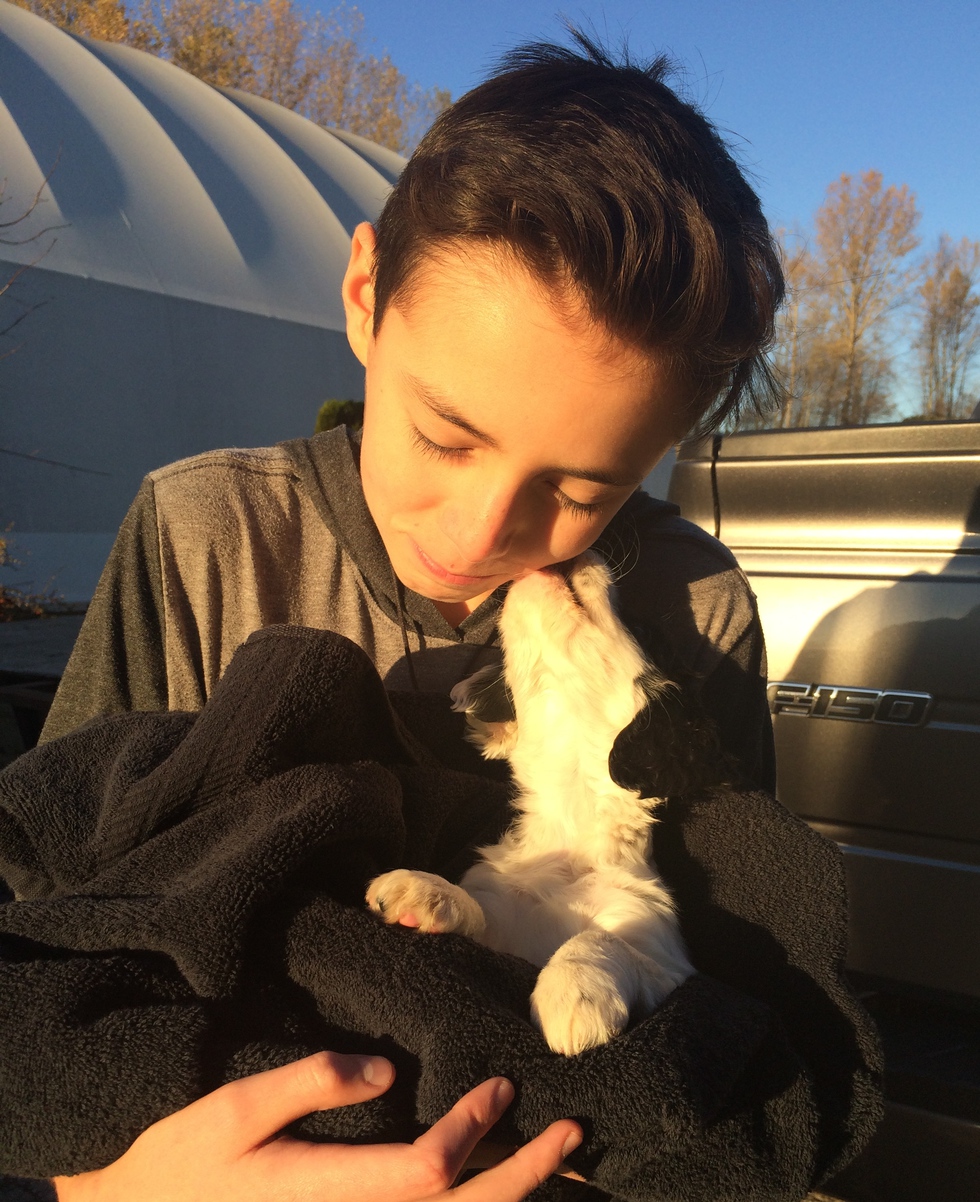 At 8 weeks, Mica made the trip from Vernon to Port Moody in a van full of show dogs bound for glory. The moment she was pulled from her kennel in the van, covered in dog doo doo, we knew we had made the right choice. Wrapped in a towel in my boy’s arms, she lifted her little head and kissed his face. For the past 16 months she has continued to be extra generous with those same kisses, throwing in the occasional morning ear nibble for good measure.