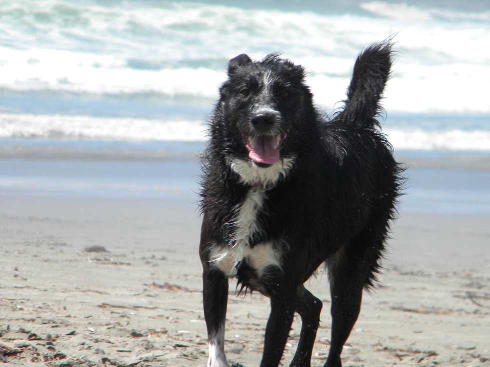This is Mercedes Wood having a grand time at Long Beach Lodge Resort. She met many friends here and became the resorts very own beach greeter!
