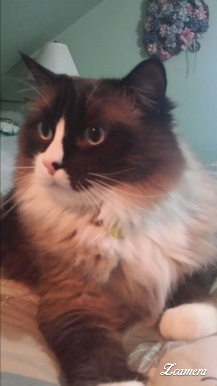 Seal point mitted Ragdoll. The man of the house but actually a big furball & extremely loving. He is also very large!!