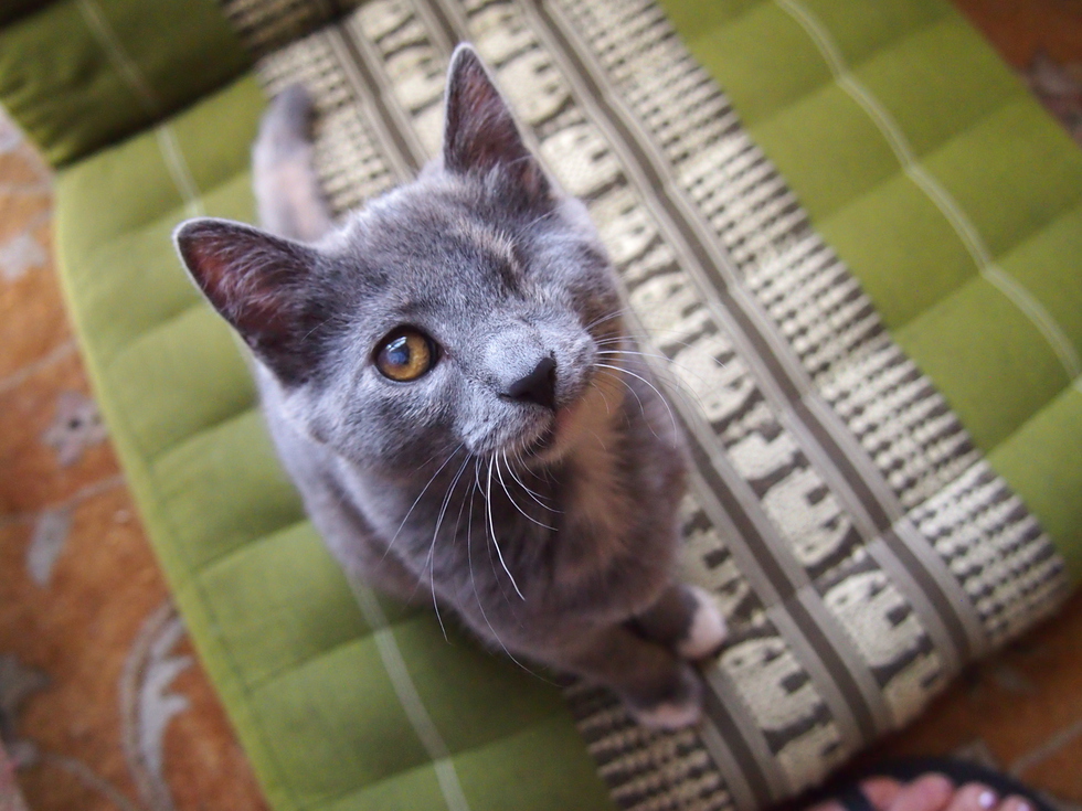 Georgia's mom was probably abandoned or at most left to defend herself out in the woods. She probably left Georgia to fend for herself because she would have been a liability to the rest of the cat family because of her infected eyes.