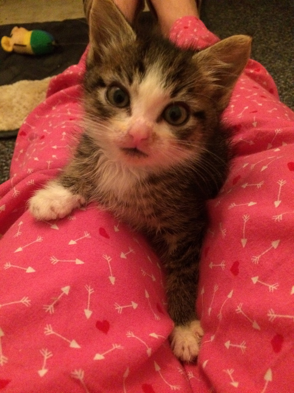 Over the few weeks we cared for him it become impossible to give him up. My husband held strong until the day I was to hand him over to the spca. He caved. A year and a half later he falls asleep in my husbands arms nightly. He completed our 3 cat one dog family and we couldn't be happier.
