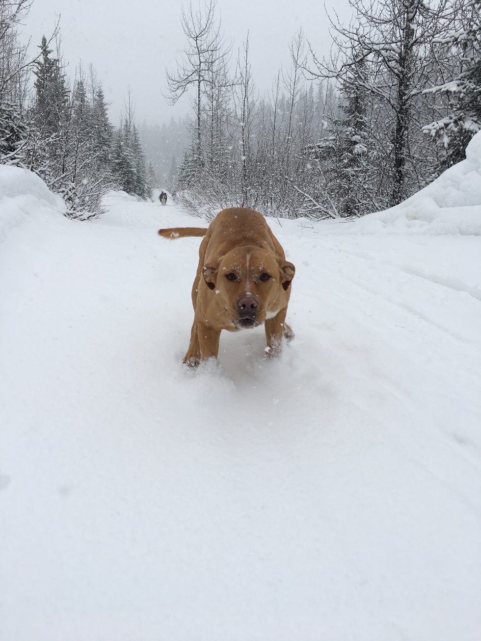 BioAzu is a staffordshire bull terrier mixed with a husky lab. She is an unlikely mix, but one of the most caring and compassionate dogs I have met. It turns out that she is also an amazing snow dog, and an in-training skijor dog!