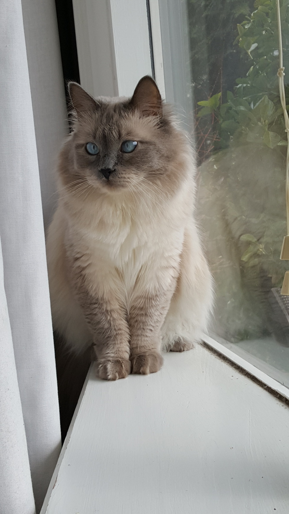 BioPhil-lincoln is a rescue cat from a shelter in BC. His kitten hood was apparently not very good. We loved his fluffy fur and beautiful blue eyes so even though he was a grump, we took him home. Phil is only a year and a half old. When we brought him home a few short months ago he would hide under my daughters bed and growl everytime someone entered the room. Now, he will eat treats out of our hands and if you're lucky you get to give him pets. He is a frisky, agile cat who loves to talk. He will keep him self at a safe distance most of the time but enjoys being around his people and telling stories. We have high hopes that with a little more time his anxiety will settle and he will learn to trust again. He has made great strides and definitely stolen our hearts and we love him.