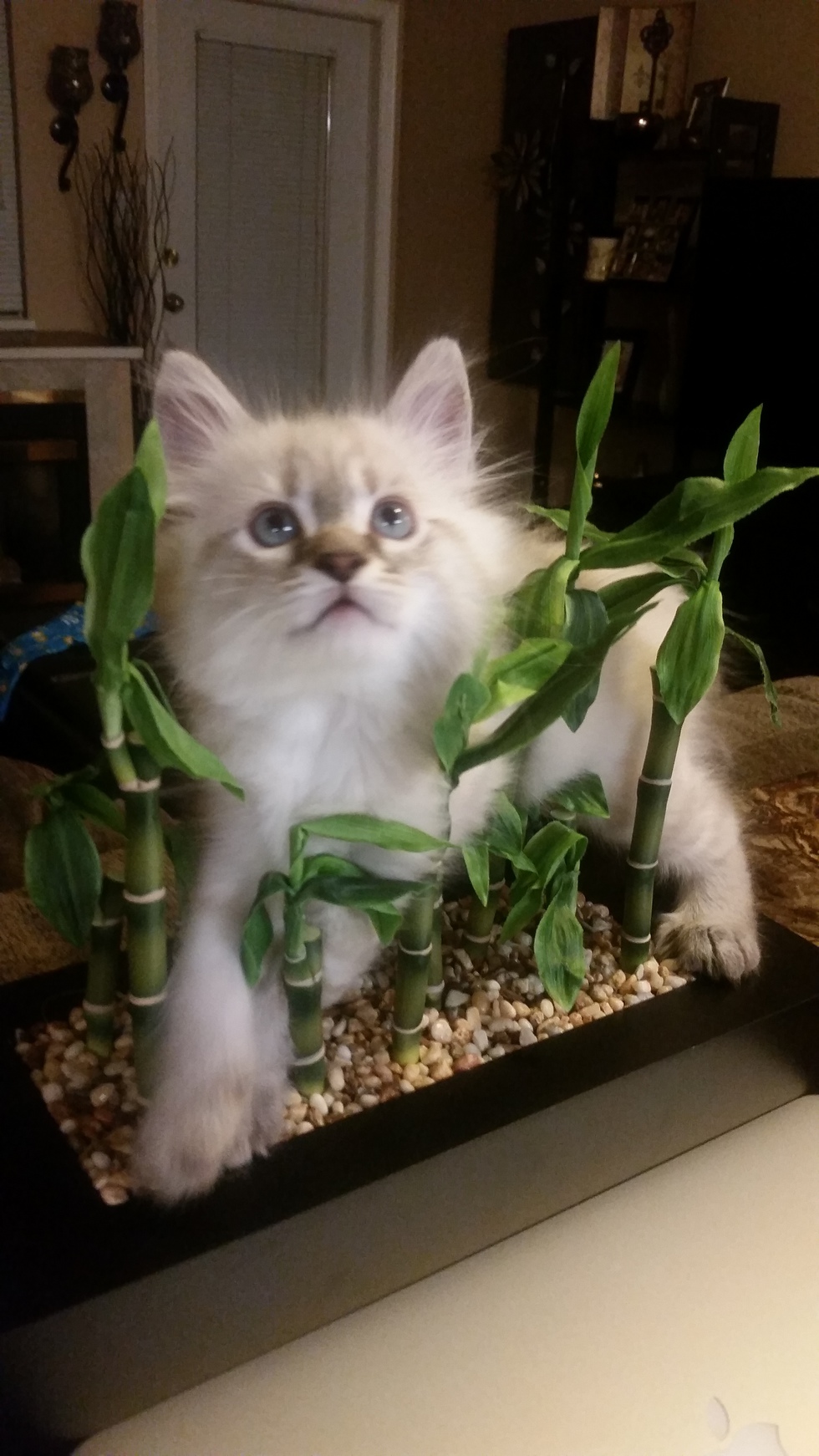 BioHuey is a gentle giant with big paws and a big heart! He was one of 3 beautiful long haired white kittens while all the others in the litter were short haired tabby's. Huey is part Maincoon with a laid back attitude. He sleeps all day and chirps all night. Huey is a smart boy, he brings me his toys and steals my salt and vinegar chips if I let him!